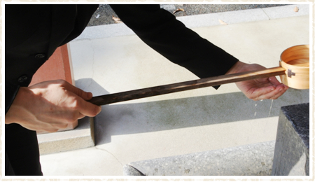 右手で柄杓をもって水を汲み、左手を洗う。
